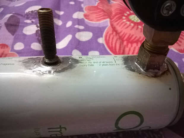 2. Extremo posterior de la CAN se utiliza para conectar la válvula de latón. (en los extremos de la válvula de latón, he insertado las arandelas de silicona para hacer el aire accesorio apretado)