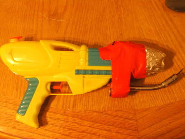 este es un instructivo que te enseña a construir un lanzador de la llama de una pistola de agua y materiales de asimiento de casa!