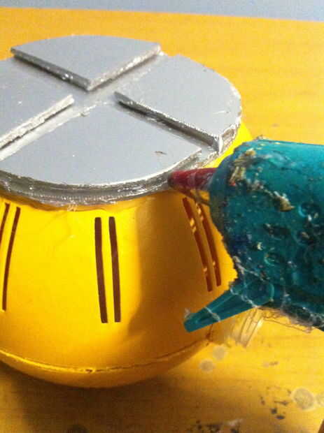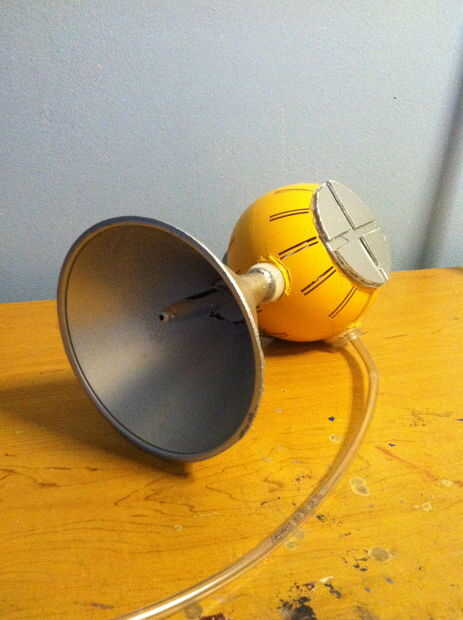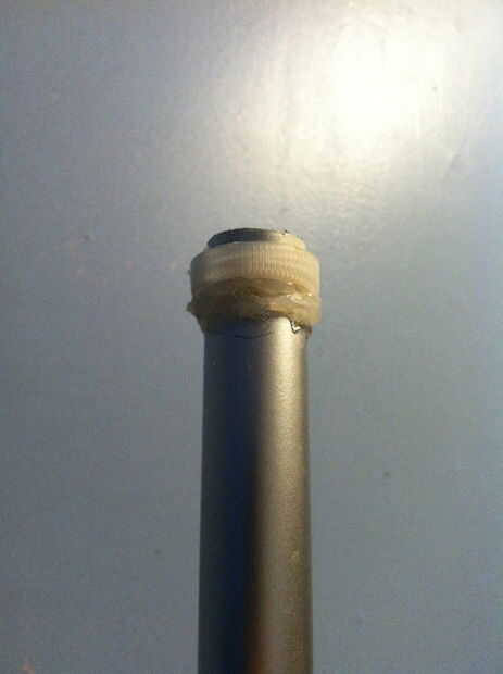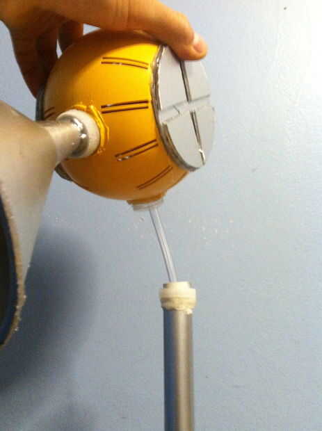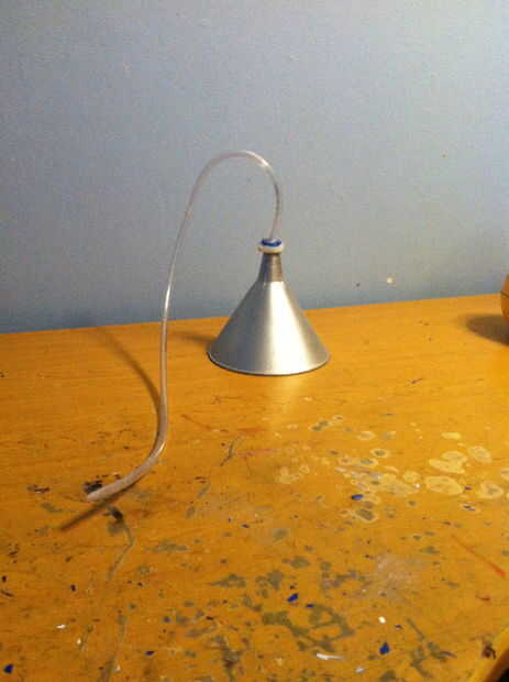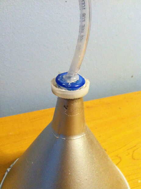 Una cáscara de marcador puede utilizarse para hacer la boquilla. Agujero pequeño en su extremo. Tubo de alimentación en la medida en que puedas. Pegamento caliente. Puede utilizarse otra tapa para boquilla robusta.