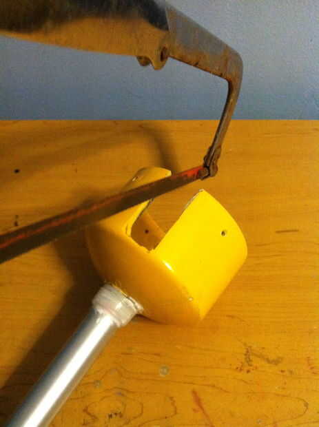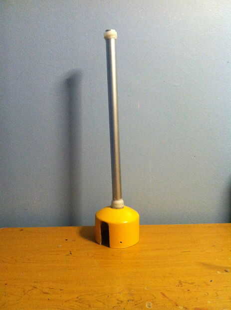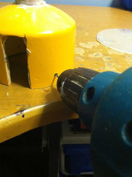 tapa de 1 x 4 pulgadas PVC. Perfore un agujero en su parte superior una pulgada de espesor. Pegamento la parte inferior de la tapa de la botella de agua en él. Perfore cuatro agujeros igualmente espaciados alrededor de su edge(Bolts) de fondo. Emparejar el agujero con tamaño de refuerzo de esquina. Corte dos pulgadas ancho rectangular orificios equidistantes a sus lados.