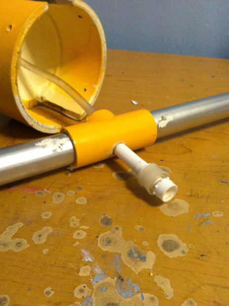 Se trata de una pistola de agua de tubos de PVC y algunas guarniciones de cobre amarillo.Lo hice que puede ser desmontado para el almacenamiento y montado otra vez cuando sea necesario.Las 4 partes de su hizo hasta de sonTanque de aire (hice desmonta