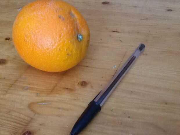 1) naranja o cualquier fruta cítrica con una cáscara gruesa.