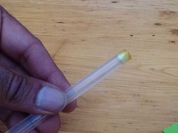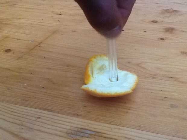 Presione el tubo en la piel para que un pedazo de la cáscara se embute firmemente en el extremo.