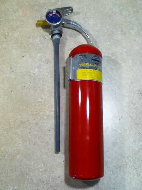 Ahora dependiendo de su extinguidor, tendrás que averiguar cómo Desenroscar la parte superior del tanque. Mina tenía una etiqueta de metal con una ficha que asegura en un tornillo y luego utilicé una llave para aflojar. Resulta que tengo que no estaba apretada. No estoy seguro si son todos así, pero ¡ ánimo! Se desprenderá.