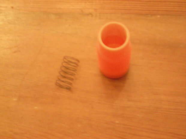 Una vez retirado el post, verás que es un negro "donut" de plástico en el interior. Esto es sostenido por un resorte. Utilice el destornillador Presione a un lado de la dona hasta que se convierte en su lado. Entonces puede utilizar alicates de pico largo (dependiendo de qué tipo usted tiene) otro destornillador y tieso alambre en forma de un gancho para pescar afuera en la primavera. Después de quitar el resorte, está bien que el Donut quede en la cáscara.
