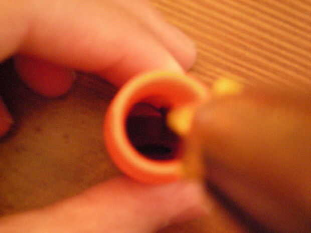 Para ello, encontrar un objeto sólido con un pequeño agujero o brecha en ella (como una vieja mesa de madera picnic) y colocar la cáscara, abrir lateral abajo, encima de ella. La parte superior del post debe estar en la brecha libremente, con la cáscara descansando sobre su borde exterior. Coloque el destornillador en el agujero en la parte posterior de la cáscara. Mantenga la cáscara y poner el dedo contra el destornillador, en cuanto a guardar de caer fuera de la cáscara cuando comienzas a percusión. Comience a golpear firmemente en la parte posterior del destornillador con el martillo. El post probablemente no caiga en el primer columpio del martillo, para seguir adelante, aumento de la fuerza de llaves si es necesario, hasta que caiga el post.