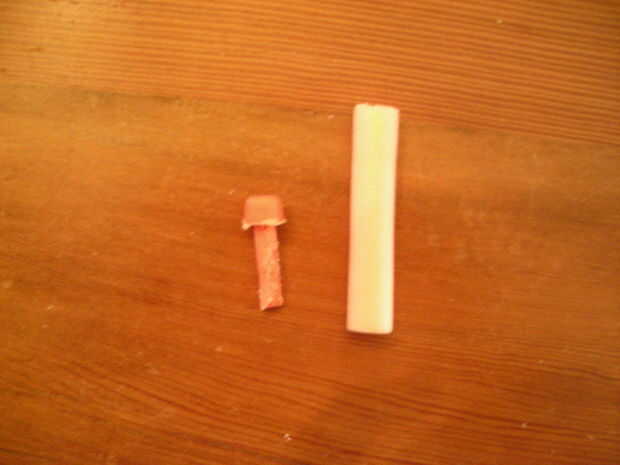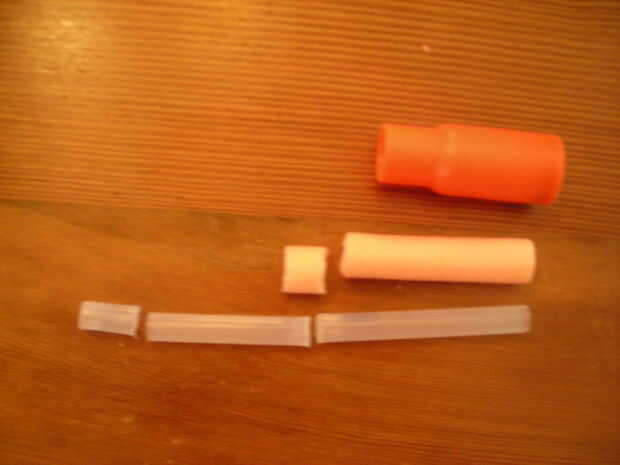 Barril-corte una mitad pulgada el extremo de la pluma, luego cortar el pedazo restante de dos piezas: 1 3/4"(barril) y aproximadamente 2" (cámara del bb)