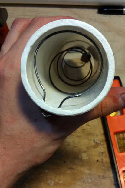Anclado la primavera interior del cañón de la pistola pasándola a través de un par de agujeros perforados en apertura de no-diagonales del cañón.
