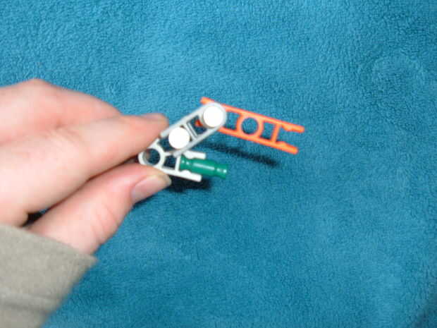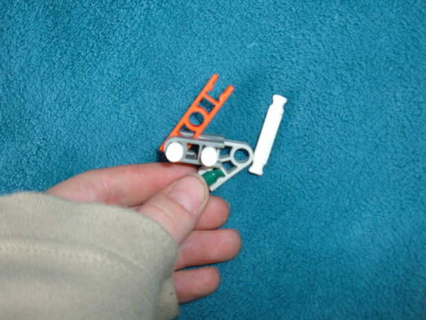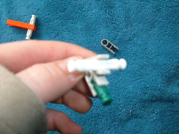 K'nex más pequeña pistola en instructables que conozco. Utiliza sólo 9 piezas. Pueden disparar hasta 15 pies pero puede ser menos o más dependiendo de las gomas uso.ACTUALIZACIÓN!!!!!! puso una goma nueva y reforzada la pistola con cinta adhesiva (ta