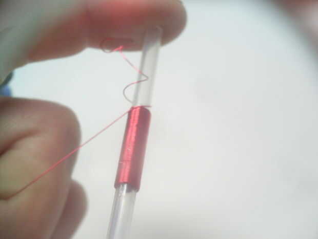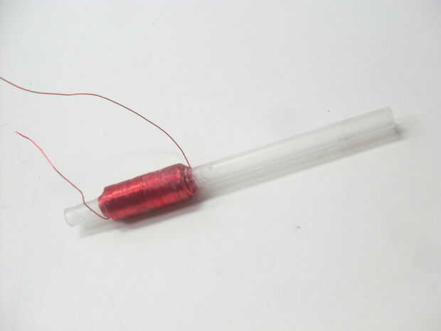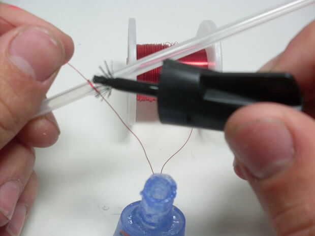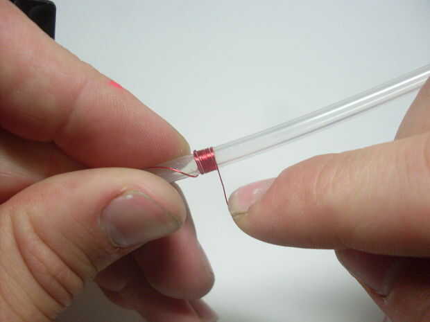 Una vez que tengas tu corbata listo, tubo medio nudo con el cable en el tubo y el pegamento lo en su lugar. La posición del nudo debe ser aproximadamente 1 pulgada del extremo del tubo. Ahora empezar a envolver el alambre alrededor de y alrededor del tubo hacia el otro extremo. Tratar de conseguir una bobina bien ajustada y mantenga la envoltura hasta que esté aproximadamente 3/4 pulgadas de largo, luego aplique una capa de pegamento a la bobina. Ahora has completado la primera capa. He encontrado que 7 capas funciona bastante bien para esta pistola de bobina compacta. Para hacer otra capa, simplemente empezar a enrollar el alambre hacia el nudo donde usted comenzó. Seguir enrollando hasta tener 7 capas, recuerda pegar cada capa así. Esto toma algún tiempo para que no trate de prisa porque la bobina es una de las partes más importantes de la pistola.