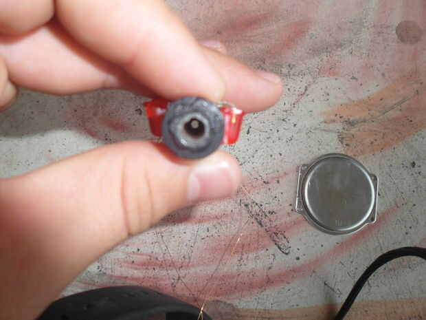 Ahora vamos a hacer la bobina. Primero se corta el tubo de la pluma por lo que cabe dentro del reloj. Ahora toma las dos arandelas de plástico y poner una arandela en un extremo y la otra arandela en el otro extremo y encolar con pegamento o con un pegamento diferente. Ahora debemos enrollar la bobina. Puede utilizar un taladro para acelerar el proceso. Asegúrese de que dejar aproximadamente un pie de alambre que sobresalen de ambos extremos del alambre magnético después de que termines de bobina de bobina. Ahora tome el tubo con las arandelas y el alambre magnético de la cinta a una de las arandelas de aproximadamente un pie desde el extremo del alambre magnético. Ahora solo arrollar el hilo alrededor del tubo hasta que se construyó hasta aproximadamente el mismo tamaño que las arandelas. Ahora cubra la bobina con cinta aislante (Recuerde dejar aproximadamente un pie de alambre sobresale este extremo también). Ahora, pase los cables por el agujero más pequeño que hemos perforado en el reloj. Ahora ajuste la bobina dentro del reloj y poner la espalda en y atorníllelo en su lugar.