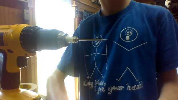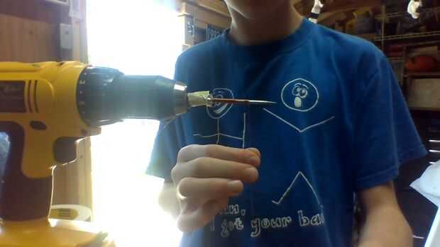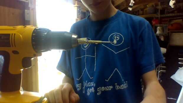 poner un objeto redondo del tamaño de la bobina en el portabrocas de un taladro