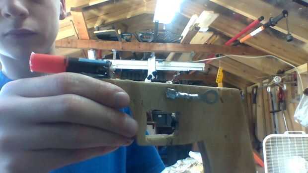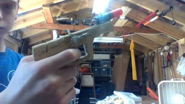 me dijo que no podía comprar un arma de BB, así que en vez de eso hice mi propia versión de un railgun que dispara 320 julios en una fracción de segundo. Era capaz de perforar la puerta de mi garaje, pero tenía el interruptor golpe me así que estoy a