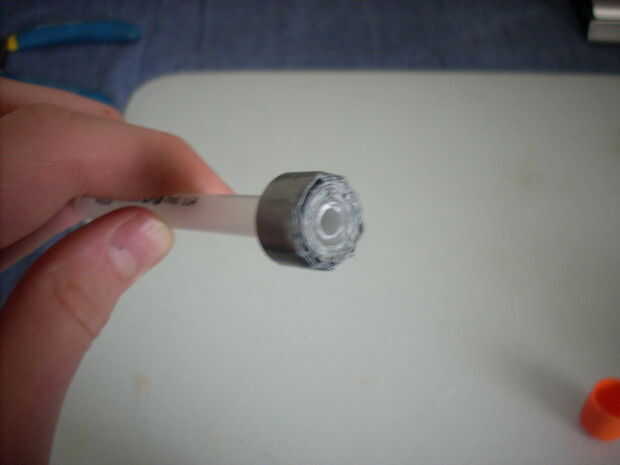 -después de que la pluma se inserta en la cámara de combustión, bien Enrolle cinta aislante alrededor de él para hacer un ajuste apretado. (imagen 6)
