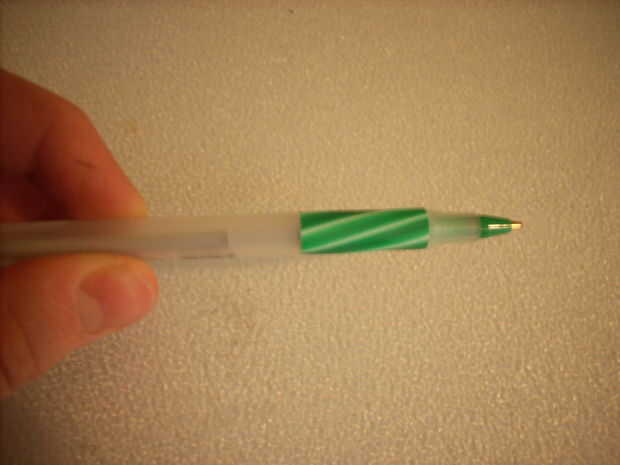-cinta alrededor del tubo de la pluma (foto 4) hasta que encaje perfectamente en el cuerpo de palillo de pegamento. (imagen 5)