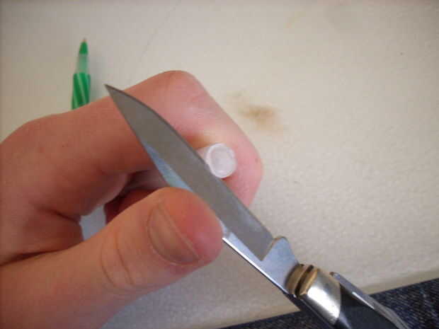-Retire el extremo tapado del tubo pluma. Lo hice con mi cuchillo. (imagen 3)
