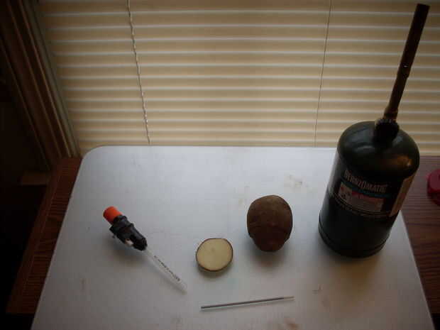 como el empuje de munición el cañón en la papa y el tirón posterior hacia fuera con el pedazo de patata en el cañón. empuje hacia abajo con la barra de memoria ram. llenan la cámara de combustión de propano y cierre rápido la tapa.