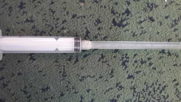 En primer lugar, desarmar la pluma bic y péguelo en el adaptador de la aguja. Asegúrese de que es un sello hermético para evitar fugas de aire.