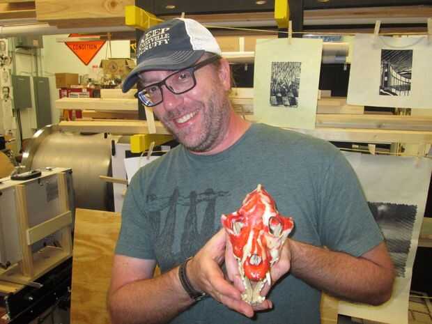 Jason tuvo un cráneo animal había recogido y derretido bolitas coloreadas y InstaMorph llano en diseños aseados que rellena los agujeros y las anomalías en el cráneo!