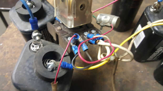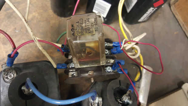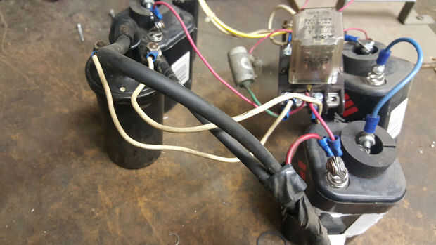 Esta arma utiliza un relé con dos capacitores para actuar como el sistema de puntos y el condensador, por lo que si se construye este escuchará el relé traqueteo cuando empujas el interruptor porque constantemente es tirar y abandono en lugar de intentar mantener la bobina en constantemente que no trabajan para este sistema. Utilicé dos 350 VDC 100 condensadores de μF. El relé es de 12 voltios. Sé mi cableado parece un lío porque pongo esto juntos en el trabajo con el material que tenía.