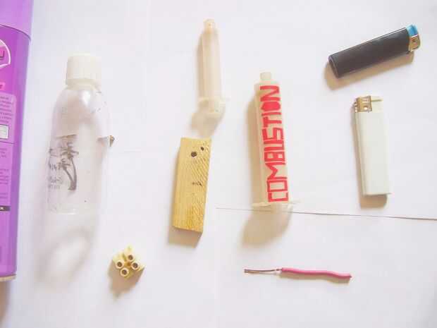 Airsofts deben incorporar, así que hice una versión de bolsillo de la SpudGun. Funciona como un spitball pero tiene un sistema de ignición. La pistola dispara BBs, papel, tejido o cualquier tipo de proyectil el le cabe en el interior es el barril. Pu