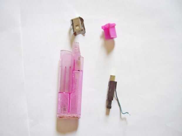 • Abrir el encendedor y atar un alambre aislado en el casquillo del metal del encendedor.