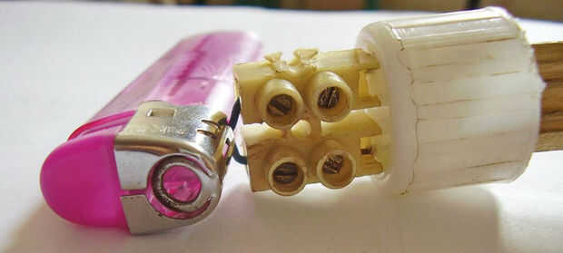 Airsofts deben incorporar, así que hice una versión de bolsillo de la SpudGun. Funciona como un spitball pero tiene un sistema de ignición. La pistola dispara BBs, papel, tejido o cualquier tipo de proyectil el le cabe en el interior es el barril. Pu