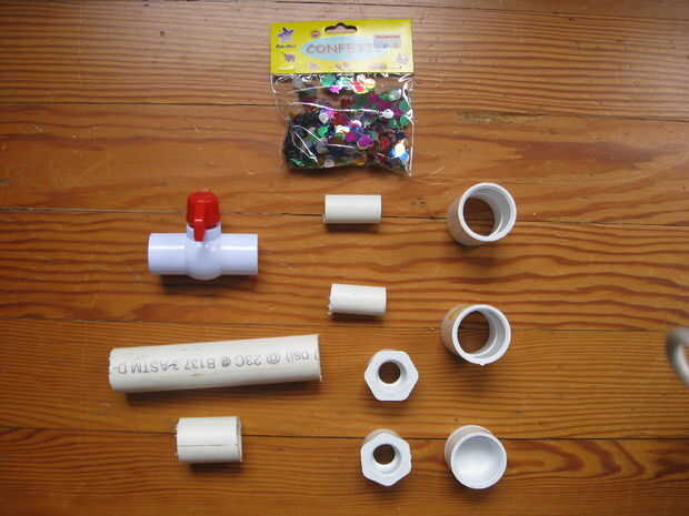 esta construido con el resorte de mi pistola nerf maverick, pipa, un taladro (para empujar los agujeros en la tubería) y un pincho de bambú. No tiene que lanzar confeti también podría lanzar Balas-Softair BB, nerf dardos y arcilla. Lanzará confeti c