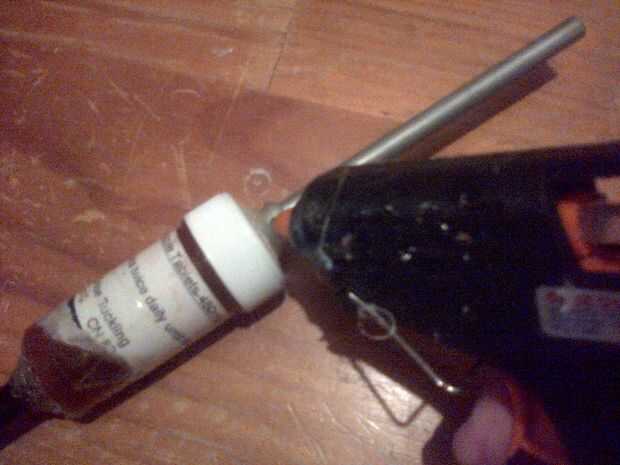 Conseguir el taladro y montar un final que encaja perfectamente el tubo metálico y perfore un orificio en la tapa del envase de la píldora. Luego hacer lo mismo en la parte inferior de tu encendedor (puede que necesite cambiar la broca). Una vez hecho esto entonces pegarlos dentro de los agujeros y asegúrese de que sellan los huecos. Haz tus cortadores o alicates de punta larga y en parte aplastar el tubo metálico para evitar que el bb de en el envase de la píldora.