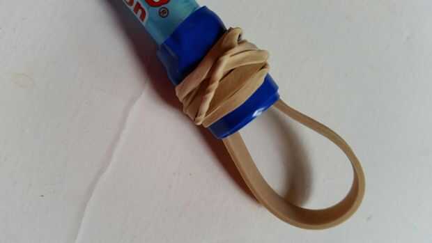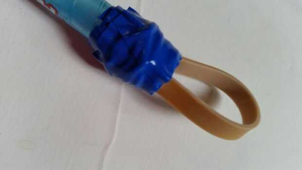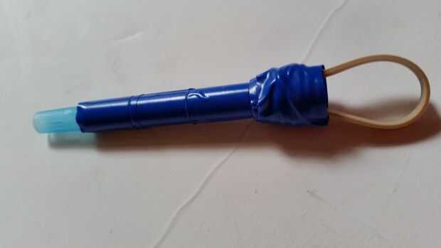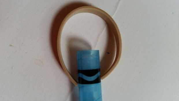 Cortar la goma en el medio y con la cinta aislante, cinta de la goma elástica en la parte posterior del tubo de Crayola ahora Envuelva la 2ª banda de goma alrededor de la cinta y la cinta sobre la que se. Si quieres decorar con el resto de la cinta de seguir adelante.
