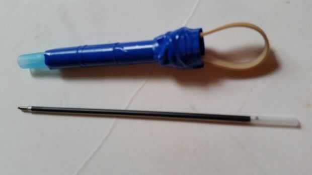 pequeño simple pistola de dardos con una sustancia inflamable.Paso 1: Reúna los suministrosmarcador de resaltadotubo de la plumapeizo encendedor encendedorcinta para ductosHerramientascuchillopistola de pegamento calientePaso 2: poner juntoTome el ca