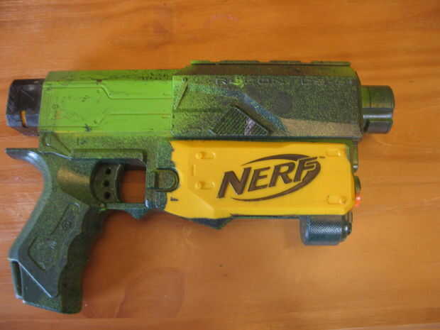 transformar el Nerf N-Strike noche Finder en una pistola steampunk con pintura y unos pocos botones!Paso 1: Pintar la pistola. Primero limpié la pistola con alcohol para remover cualquier grasa, polvo, suciedad, etc. para frotar. Pues yo utilizaba un