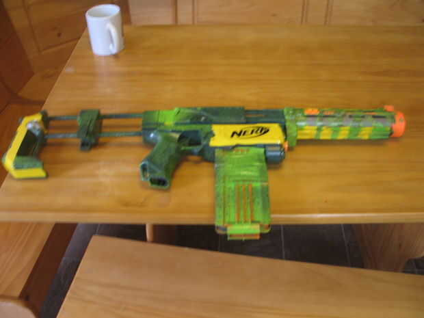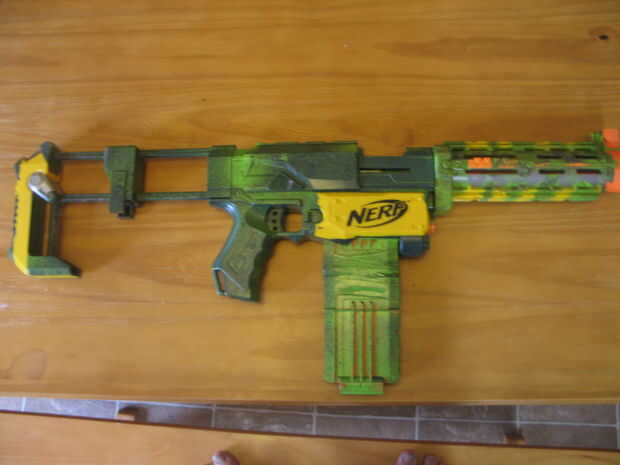 este badboy es un Nerf MAVERICK REV-6 con una luz negra integrada y lazer y un sigilo mortal busca trabajo de pintura, en este instructable mal mostrarle todas las modificaciones necesarias para crear esta obra de arteel principio de funcionamiento s