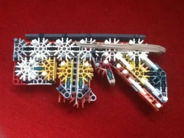 hoy he terminado una pistola completamente automática de K'nex. Es un prototipo y no el mejor, pero es un buen comienzo y estoy esperando que se convierta en un excelente arma de trabajo con algunas modificaciones. Tiene algunos defectos en su diseño