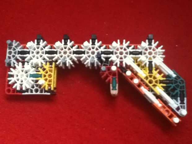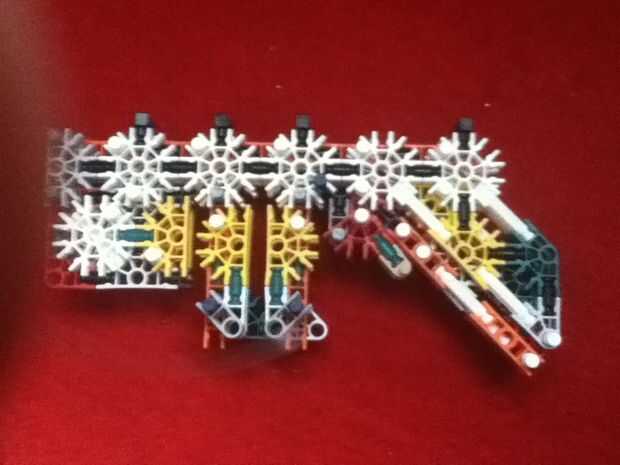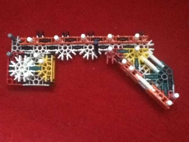 hoy he terminado una pistola completamente automática de K'nex. Es un prototipo y no el mejor, pero es un buen comienzo y estoy esperando que se convierta en un excelente arma de trabajo con algunas modificaciones. Tiene algunos defectos en su diseño