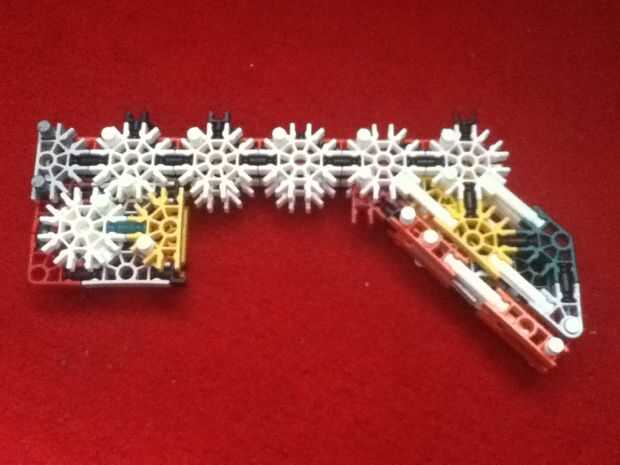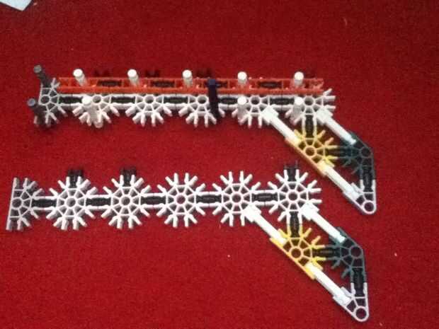 cómo hacer una pistola de k'nexPaso 1: Cosas que necesitará 5 k'nex largo rojo, 1long gris k'nex, 1small naranja k'nex 2 k'nex conectable amarilla 1 banda de cauchoPaso 2: cuerpo Conectar 5 largo rojo a amarillo 2 conectablePaso 3: Añadir goma Cinta
