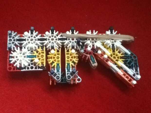hoy he terminado una pistola completamente automática de K'nex. Es un prototipo y no el mejor, pero es un buen comienzo y estoy esperando que se convierta en un excelente arma de trabajo con algunas modificaciones. Tiene algunos defectos en su diseño