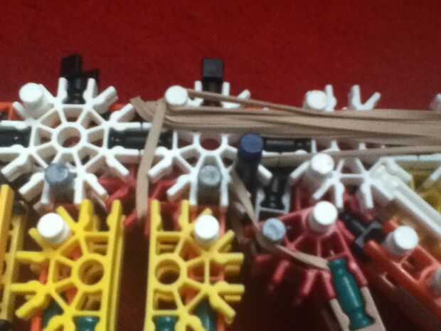 cómo hacer una pistola de k'nexPaso 1: Cosas que necesitará 5 k'nex largo rojo, 1long gris k'nex, 1small naranja k'nex 2 k'nex conectable amarilla 1 banda de cauchoPaso 2: cuerpo Conectar 5 largo rojo a amarillo 2 conectablePaso 3: Añadir goma Cinta