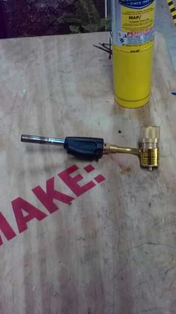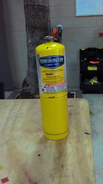 Con cuidado enroscamos el creador de chispas a la botella de propano de forma quede como se muestra en la tercera imagen.