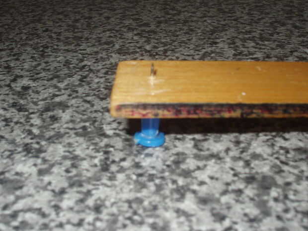 Inicio insertar un dedo pulgar de la tachuela en el extremo de la regla.