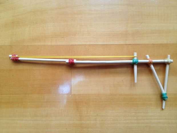 Una pistola de goma simple hecha con una clavija de ropa, regla (preferiblemente de madera), cinta adhesiva, dos chinchetas y una banda de caucho.Paso 1: Cómo empezar Inicio insertar un dedo pulgar de la tachuela en el extremo de la regla.Paso 2: sig