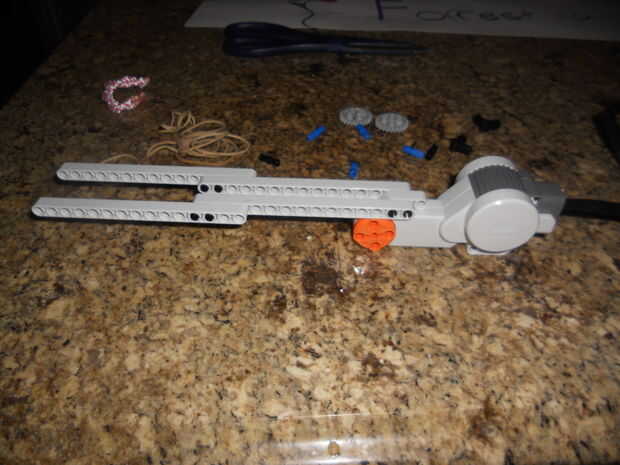 la ballesta semi-automatica de C4 es la primera ballesta semiautomática que es tan poderosa como una ballesta de lego regular. La ballesta puede disparar 35 pies o más y tiene una capacidad redonda 4. Se me ocurrió la idea de una ballesta de lego sem