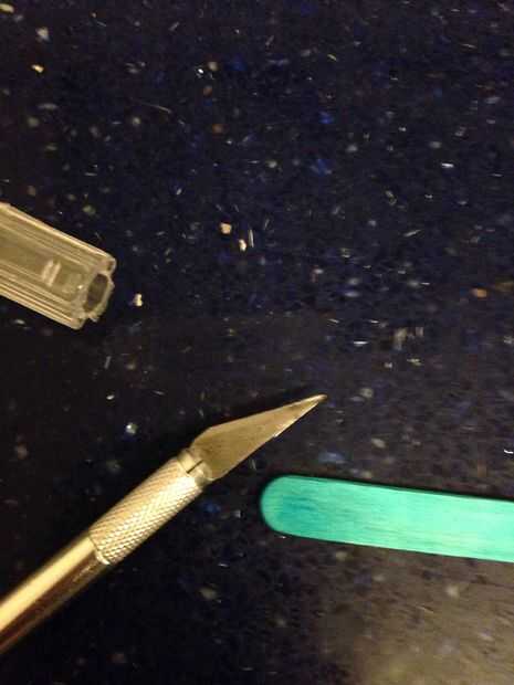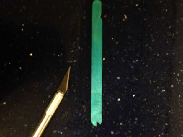 Hacer muescas en la parte posterior y en la parte delantera del palito. Como se muestra en la imagen.