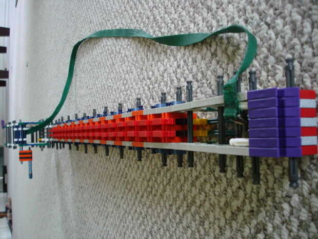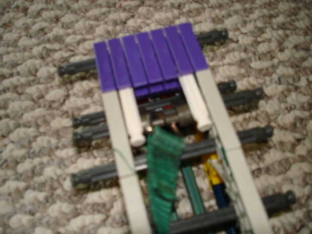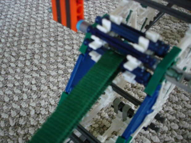 Necesitarás algún tipo de correa ancha que no es muy gruesa. Utilicé una correa de perro de repuesto. Cualquier cosa que te borrar la brecha (anchura sabio) en el rojo se desliza. Poner la goma en la parte delantera, usted debe han podido averiguar que uno por su cuenta y se extienden hasta el más cercano conector rojo (vacío) y deslice en la parte posterior de la misma. Cuando pones la banda elástica en la parte posterior de la resbalón rojo debe traer la correa, (en mi caso la correa de perro) hacia abajo con él. Entonces para dispararlas usted sólo gire la manivela y divertirse.