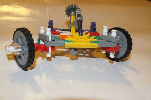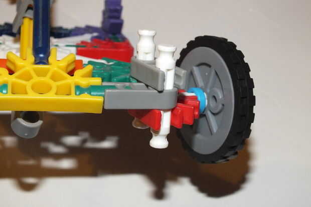 Mientras que aún con el increíble k'nex aquí es mi diseño de dirección lo que también es increíblemente simple. Puede ser modificado a ruedas más grandes de la casa o el árbol podría ampliarse dependiendo de lo se utiliza para.