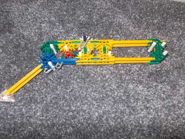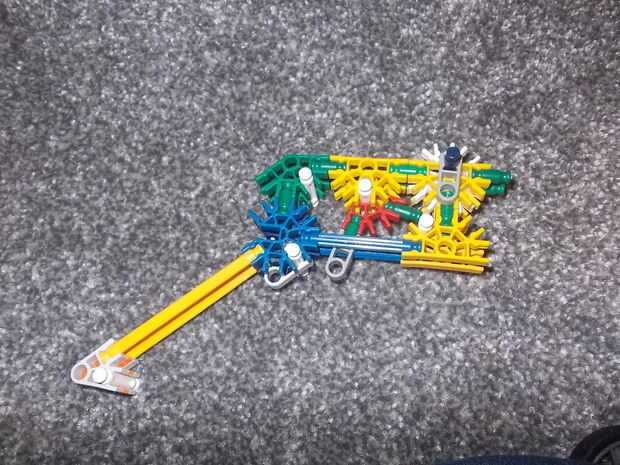 Usted debe tener una banda elástica para el gatillo hacia delante y 3 o 4 bandas de goma que van desde la parte amarilla en la punta de la pistola para el proyectil.