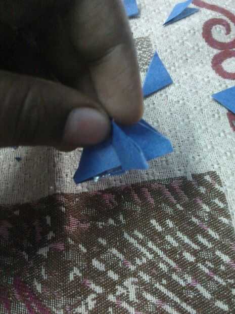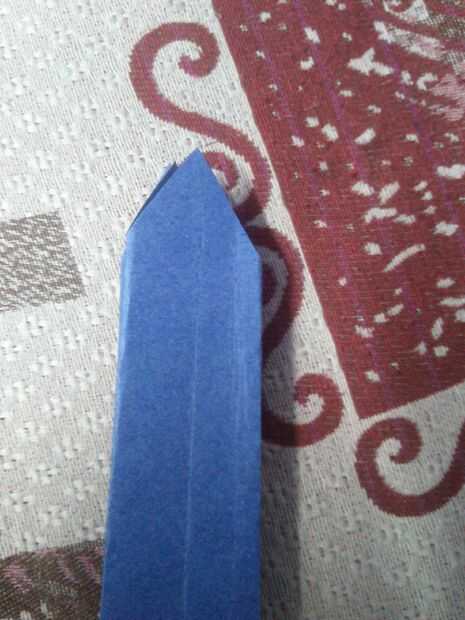 Cortar horizontalmente el papel alrededor de la mitad un cm por debajo de la base del triángulo