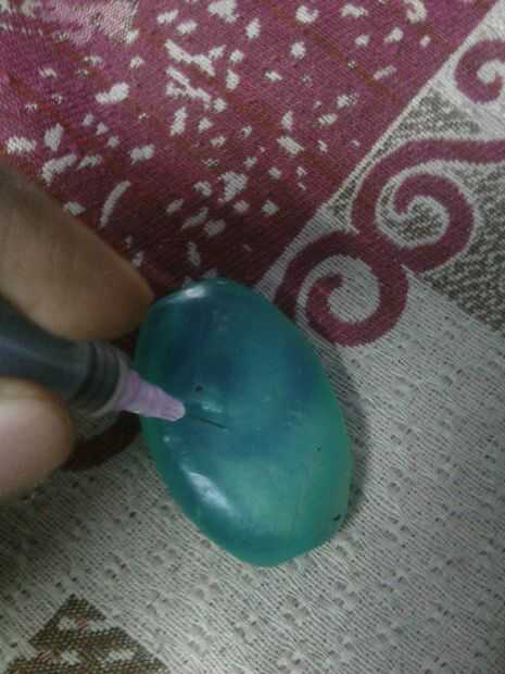 perforar el jabón con la aguja de inyección, 2 - 3 veces