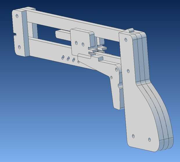 El diseño original es Matthias Wandle que escribió en su sitio de carpintería, woodgears.ca. El diseño utiliza un perno cautivo, con una banda elástica para destruir el bloque de Jenga fuera de su espacio antes de que sepa lo que ha golpeado! Visitar su sitio cada semana por lo que había leído sobre sus intentos de vender algunos de sus pistolas de Jenga, que no fueron como él esperaba porque el interés murió y tardó demasiado para hacer en madera.