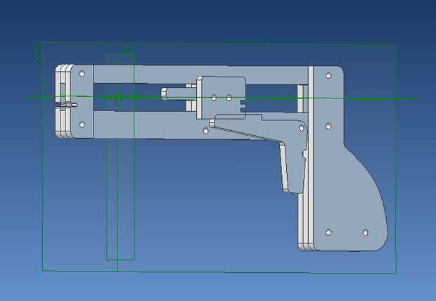 Mi diseño fue basado libremente en el de Matthias Wandle, cambié el camino une las bandas de goma para adaptarse mejor corte por láser y cambiar la culata. Puesto que no agrega cualquier tiempo más tarde añadido algunas florituras para que se vea más elegante, como una vista pretende y algunos apretones sobre la parte delantera de la culata.